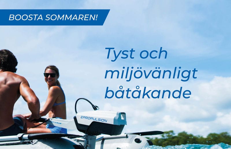 VÅRKAMPANJ GÄLLER 1/4 – 30/6 2026 Spirit 1.0 Plus komplett paket med fällbar rorkult, batteri och laddare. 23 900 kr. PÅLITLIGA OCH KRAFTFULLA ELEKTRISKA BÅTMOTORER Elektriskt båtliv premium! Det är inte här för att ersätta motorbåtar med förbränningsmotorer, utan för att tillhandahålla en premium upplevelse. Det är rent, tyst och kräver mindre underhåll. ePropulsion är […]