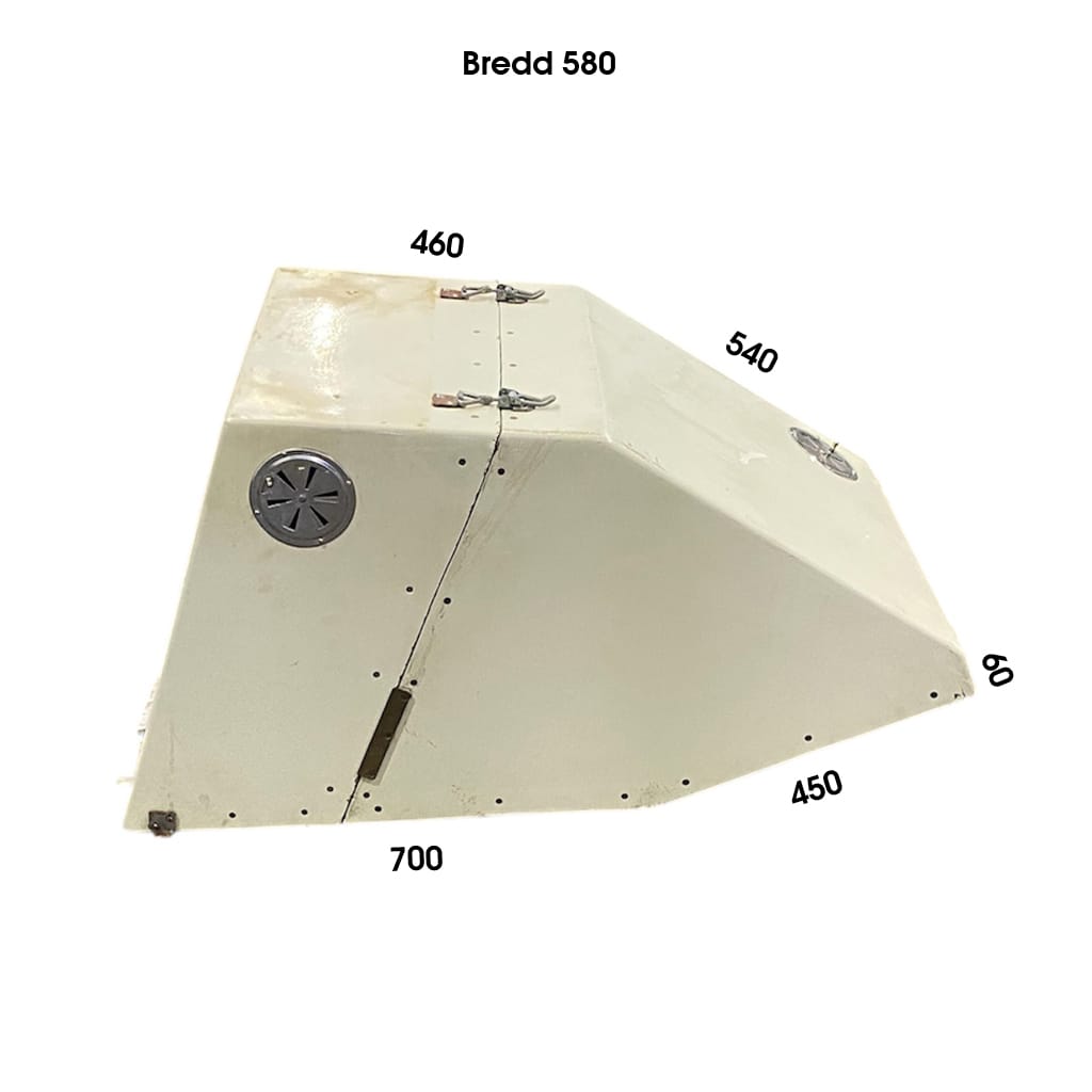 Motor huv i glasfiber har stått över en 2 cylindrig maskin på 16 hkr
